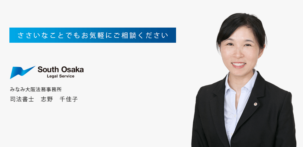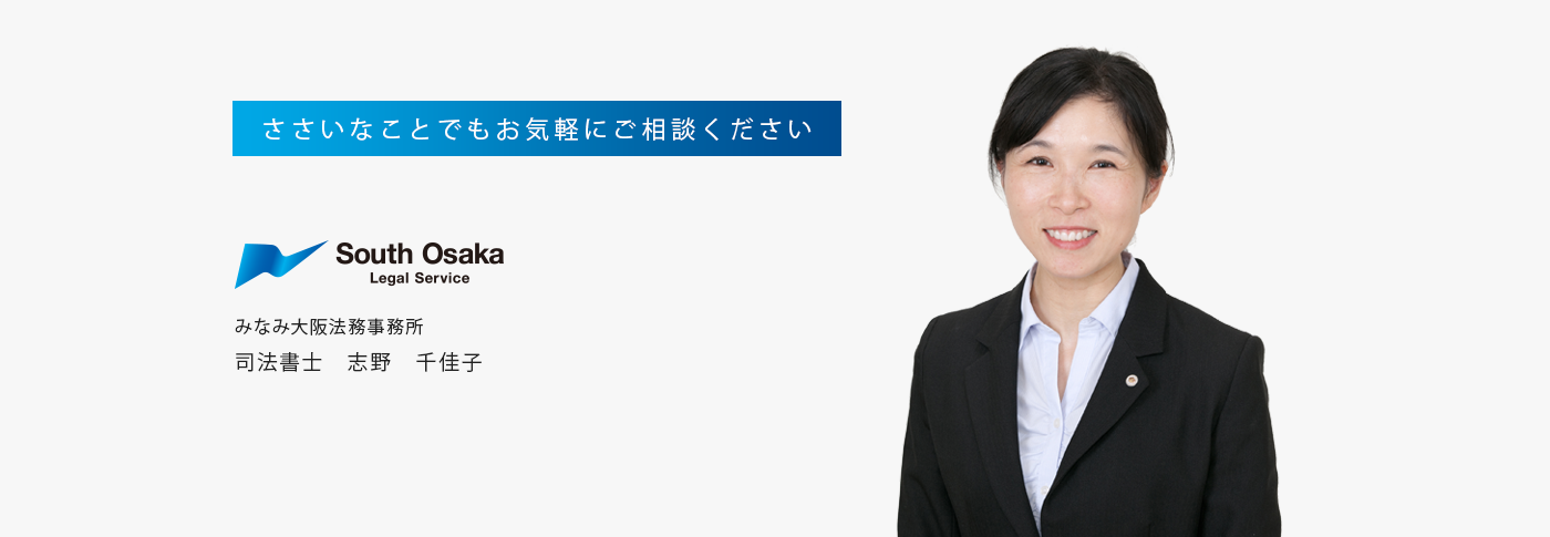 みなみ大阪法務事務所の司法書士の志野千佳子と申します。