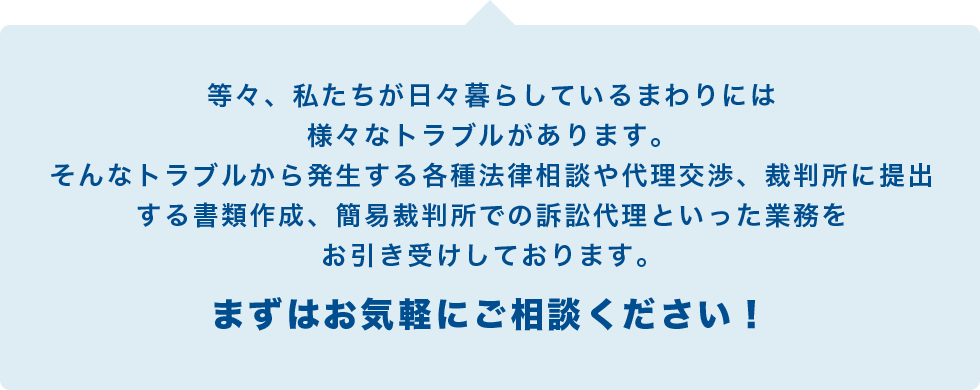 司法書士は暮らしの法律家として、身近なトラブルの解決に最適です。