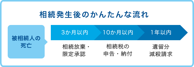 | 1 | 金融機関に相続発生の届出をし、口座の凍結が行われます。 |